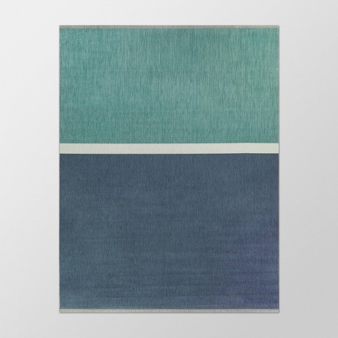 Clare Indoor Outdoor Coastal Color Block Rug In Silver Indigo Tan 5ft X 8ft Area Rug Chairish